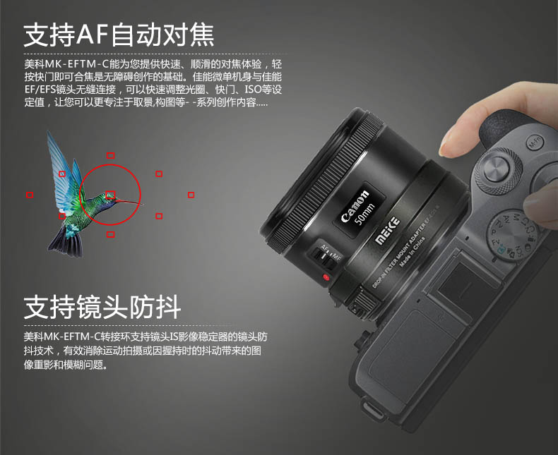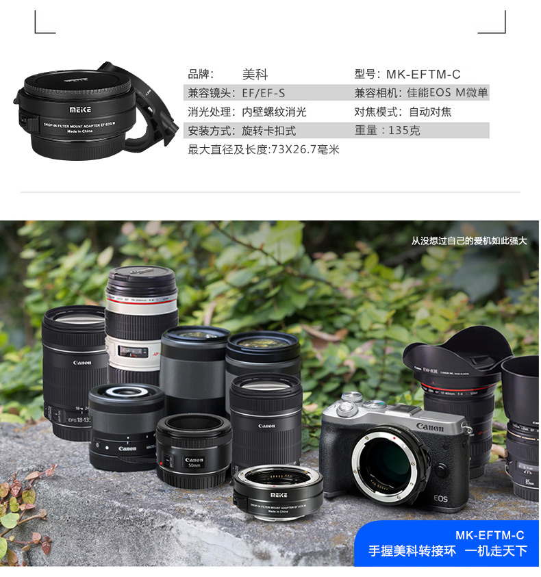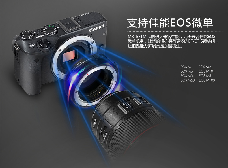 適配:佳能款EOS-M系列數碼微單相機---佳能款的EF/EF-S卡口鏡頭